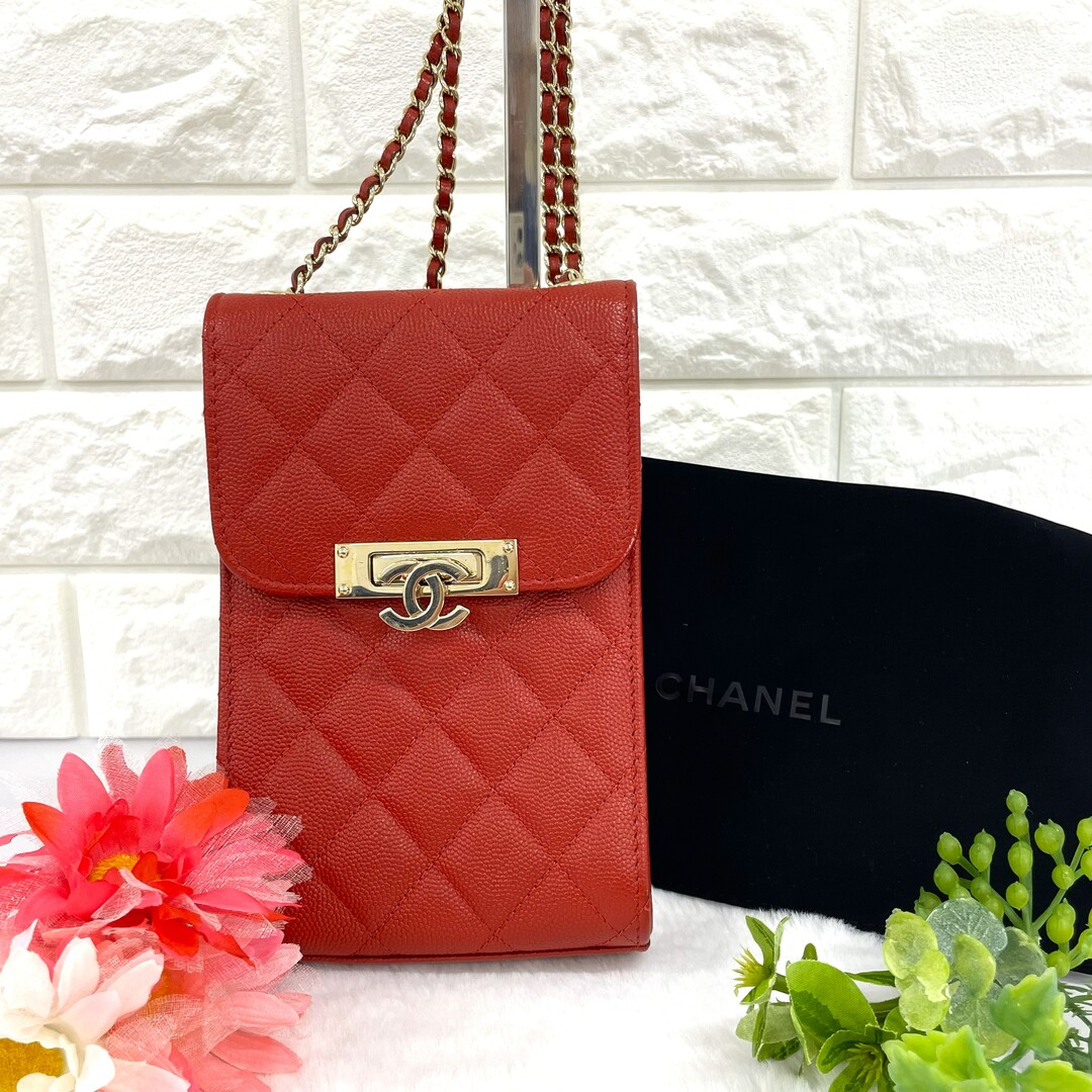先日、シャネルのショルダーフォンポーチをお買取りさせていただきました。
