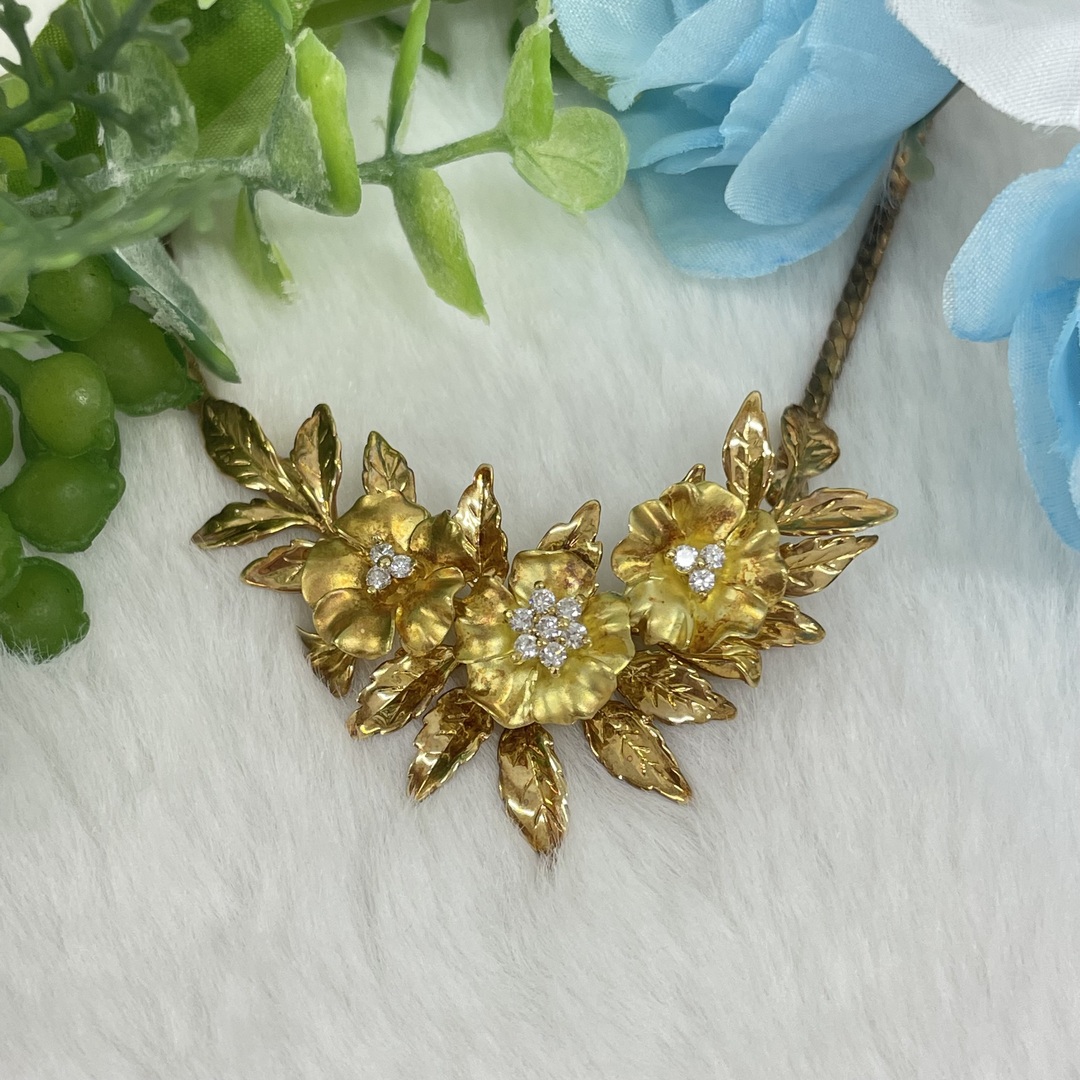お花のデザインがかわいく、ダイヤが輝いており凄く素敵なネックレスでした!