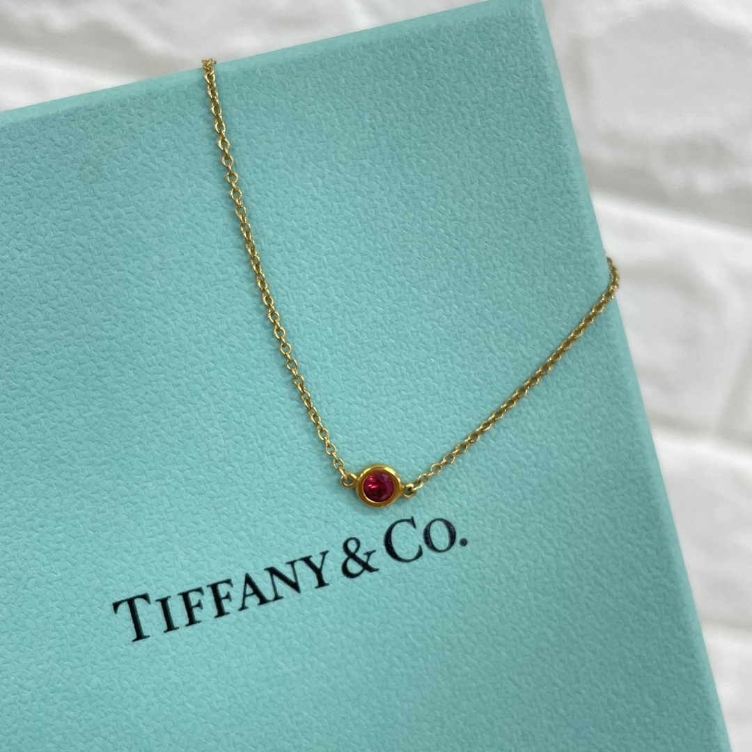 イエローゴールドのチェーンに1粒のルビーがセッティングされたデザインになっており、シンプルで素敵なネックレスですね!